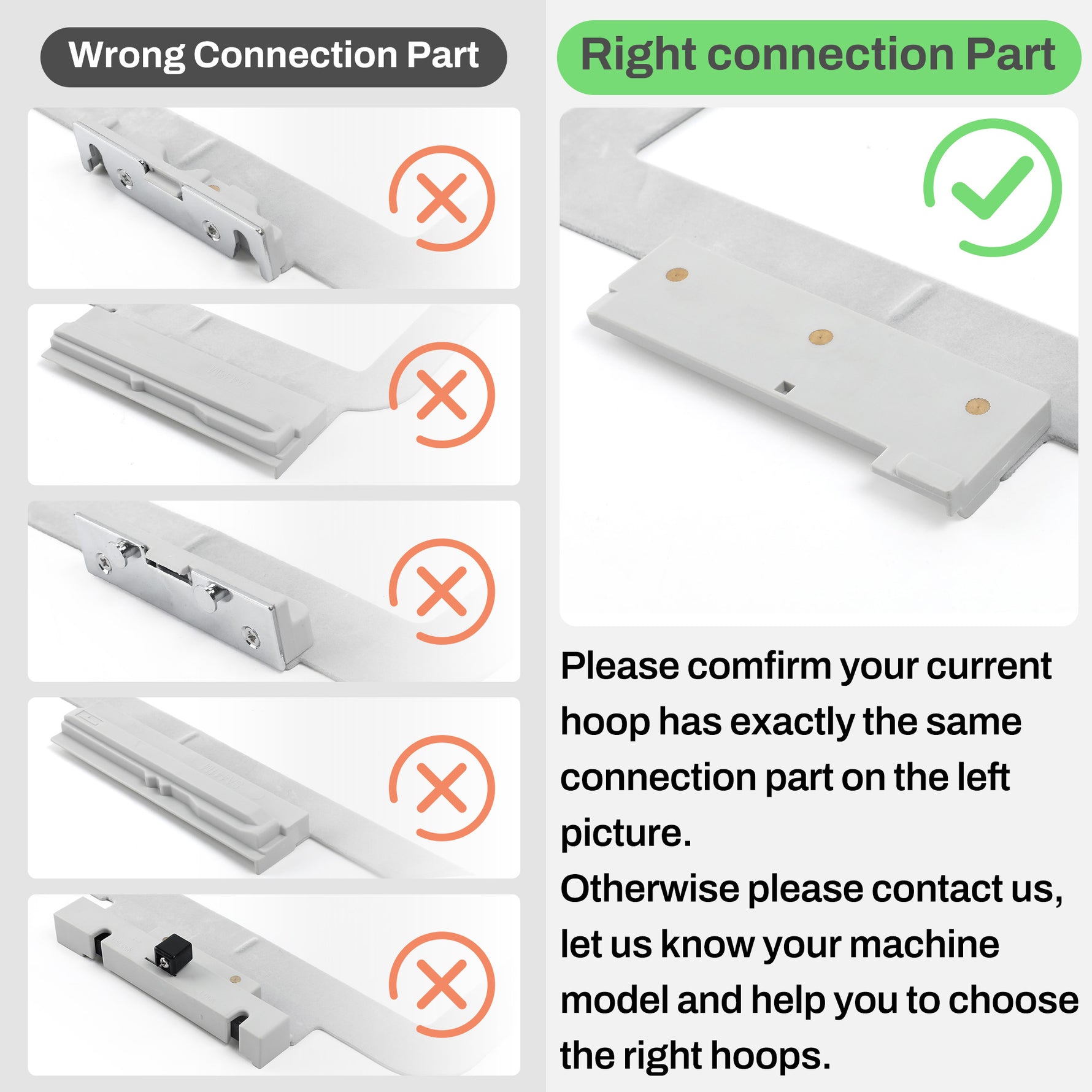 b. They both connect to the corresponding embroidery machine through different attachments on the base frame.