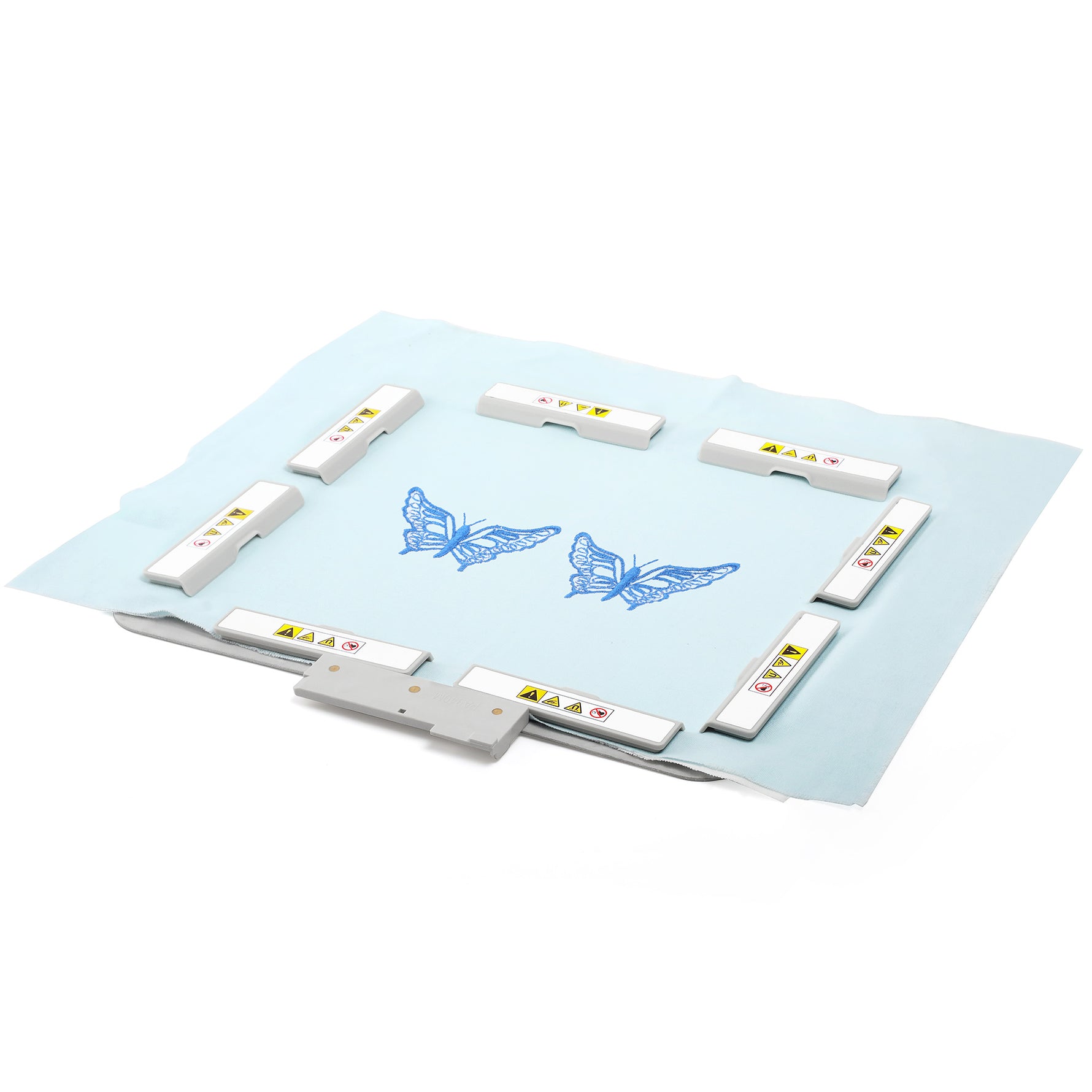 b. The DIME Hoop uses a whole upper frame, which works well for regular fabrics. In contrast, the Sewtalent Hoop uses a set of multiple magnets, making it suitable for regular fabrics as well as fabrics with zippers or uneven surfaces. You can simply avoid uneven areas by placing the magnets accordingly. If the placement isn’t ideal, adjusting a single magnet is easier than removing and re-hooping the entire frame; you only need to remove and adjust the specific magnet block.