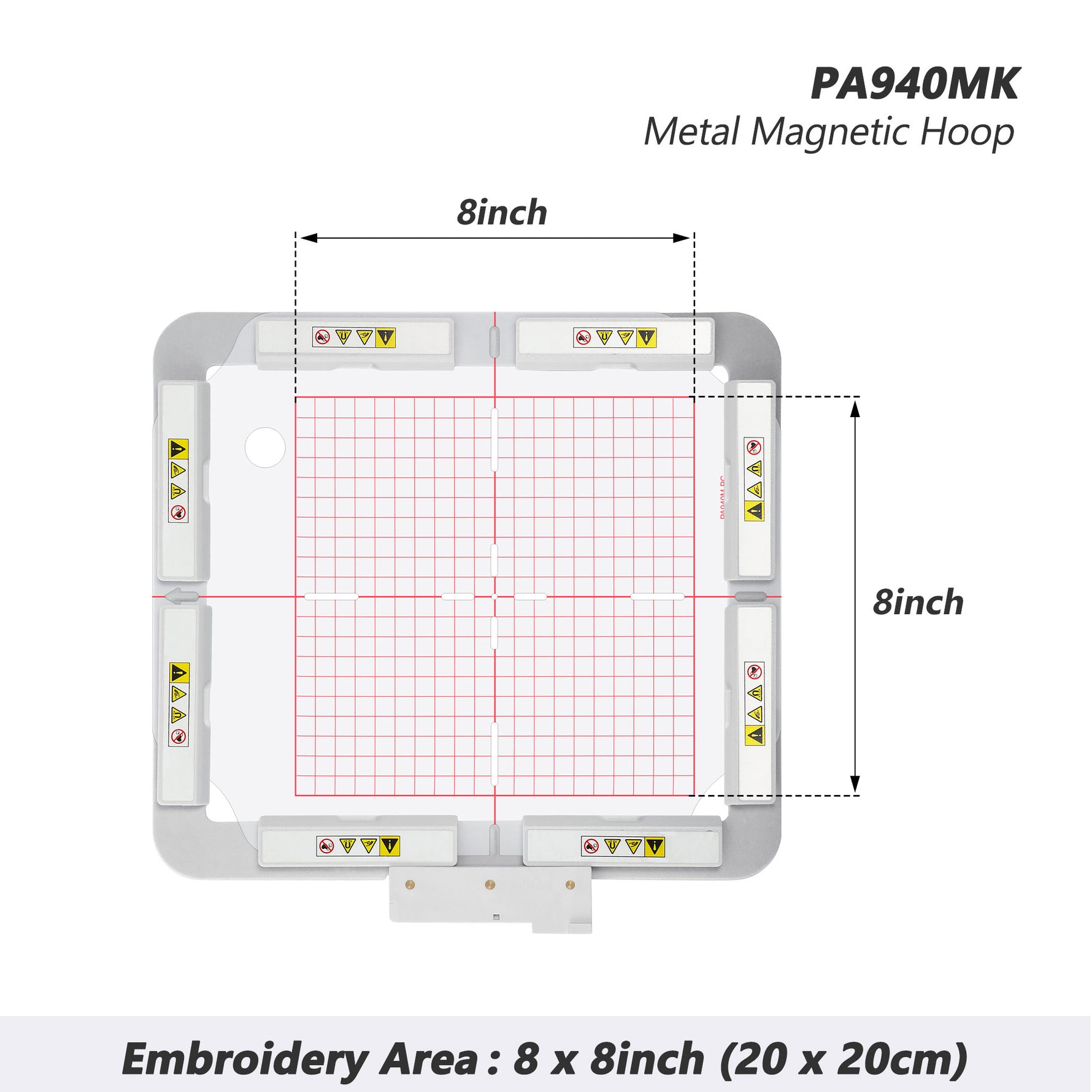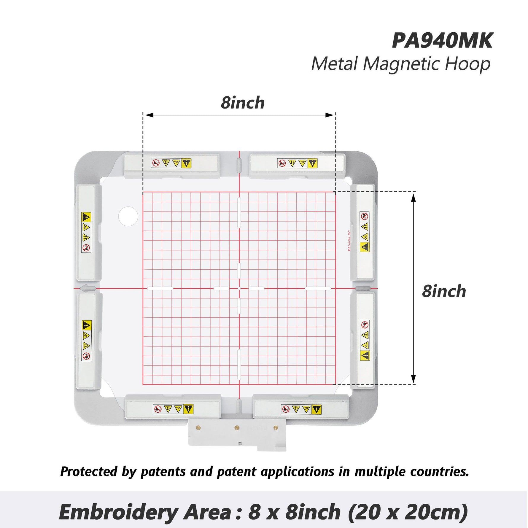 PA940MK 8"x8" 200x200mm Metal Magnetic Hoop (Long-bar Magnets) for Husqvarna Viking Designer Diamond Deluxe Royale etc. Pfaff Creative Sensation Pro Embroidery Machine